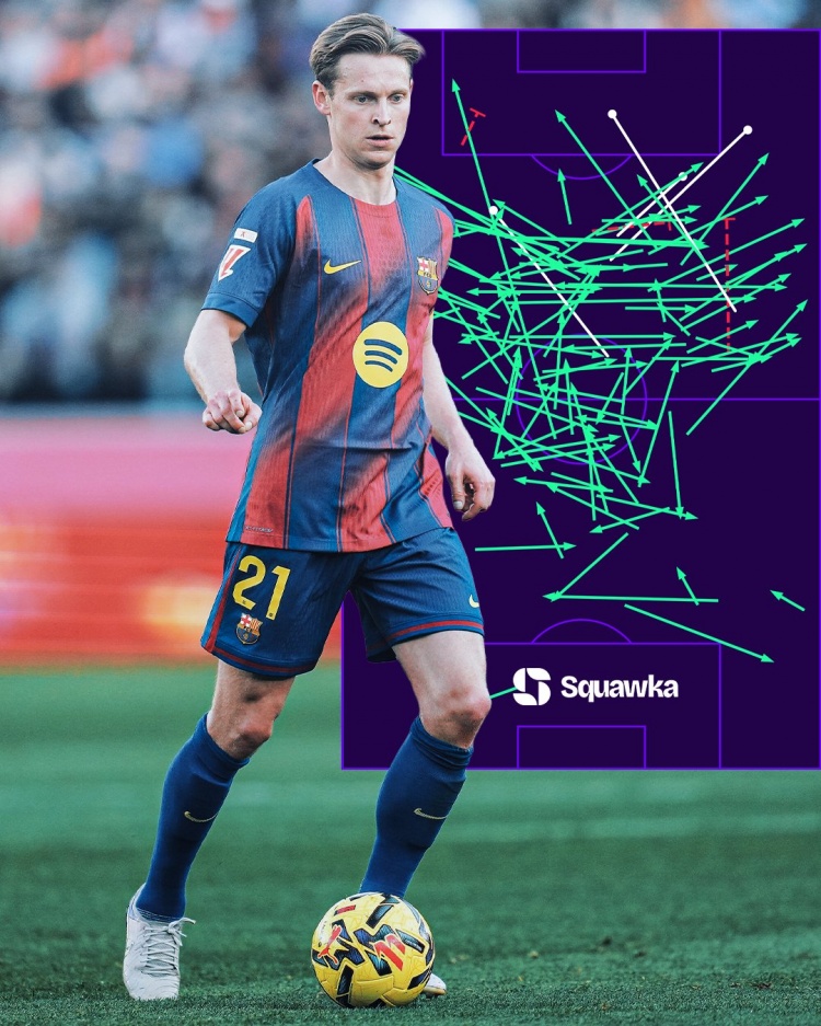 此外,德容在这场比赛中创造的机会也比场上任何其他球员都要多(4次)。